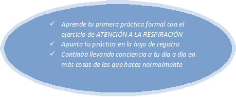 Meditación formal (ponernos a meditar ya sea con audios guía o si ya sabemos sin los audios siguiendo unos pasos) / informal (práctica de la atención plena a las actividades de nuestra vida cotidiana)
