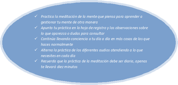 Practicar en un lugar tranquilo y empezar por prácticas breves, nuestros audios aumentan de tiempo progresivamente.