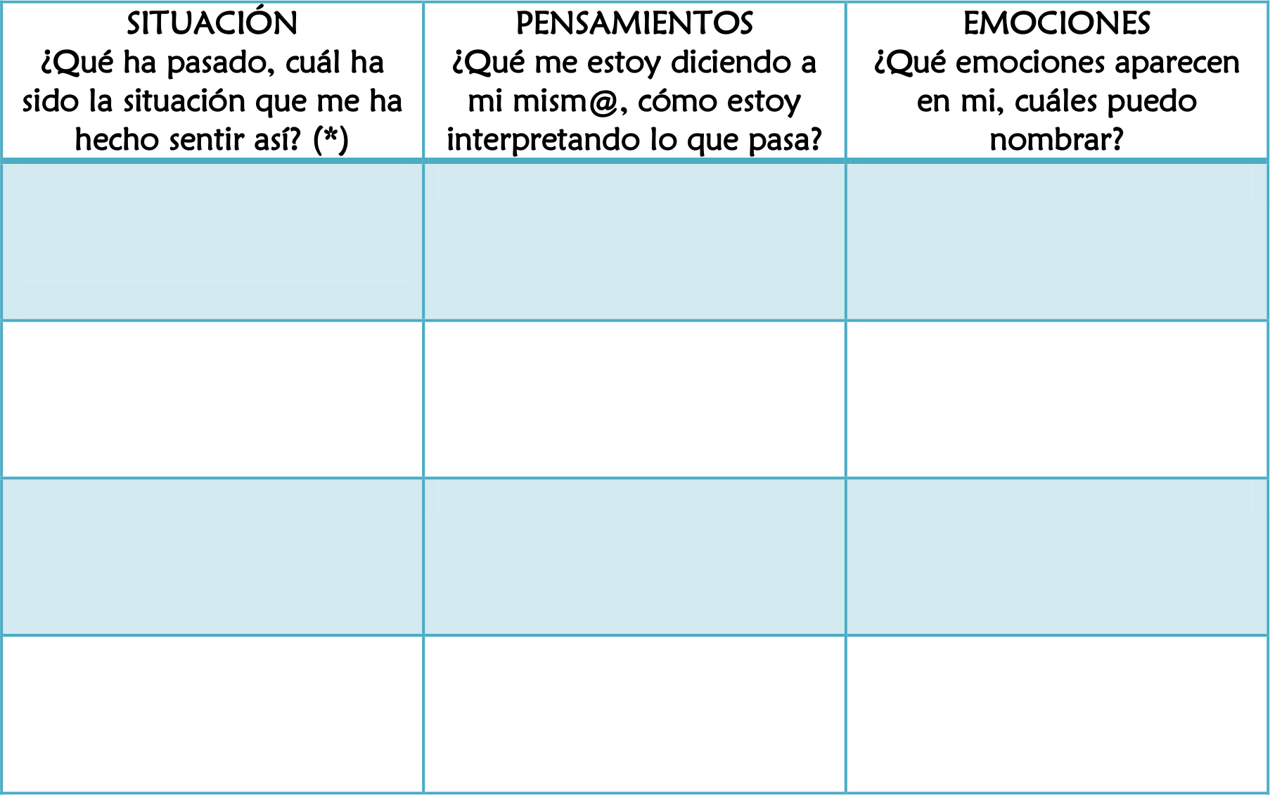 Para ganar mayor autoconciencia en tu día a día, aprende a rellenar esta tabla en diferentes situaciones.