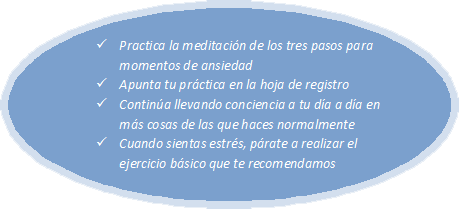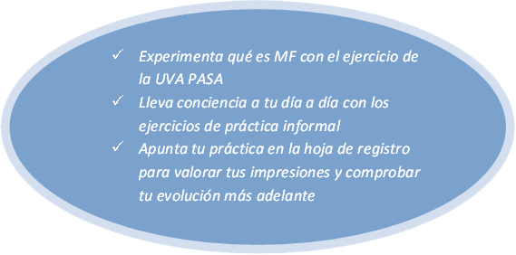- NO TENER UNA EXPECTATIVA MUY CONCRETA SOBRE CÓMO ME DEBO DE SENTIR DURANTE O DESPUÉS DEL EJERCICIO. MINDFULNESS CONSISTE EN OBSERVAR LA EXPERIENCIA, SEA ESTA LA QUE SEA.