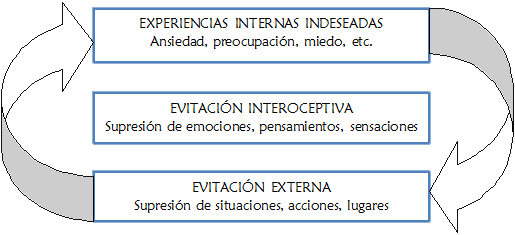 Cualquier forma de ansiedad, miedo o preocupación se convierte en una experiencia interna indeseada que conduce a intentos de evitación externa (situaciones que puedan despertarla), con el fin de controlar que no ocurra la primera, que a su vez conduce a un incremento paradójico de la severidad de los síntomas.